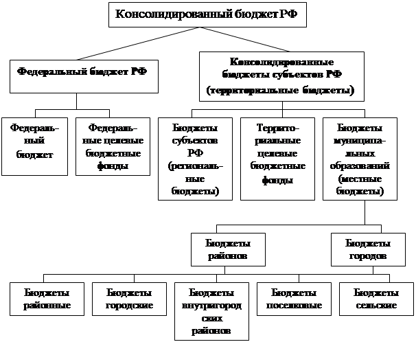 Бюджетная система, в состав которой входит федеральный бюджет, выглядит следующим образом: