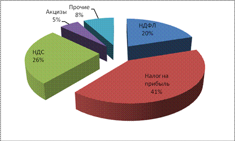 Рис.1. Структура налоговых доходов в бюджет РФ за 2010год