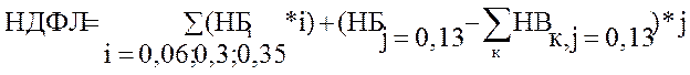 НДФЛ = НДФЛ ( 13% ) + НДФЛ ( 9% ) + НДФЛ (35% ) (1)