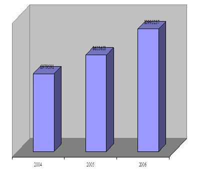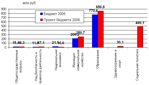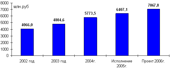 Расходы бюджета за последние три года увеличились, в 2006 году составляли по сравнению с 2005 годом - 25,9%, по сравнению с 2004 годом - 71,3% и по сравнению с 2003 годом - 83,2%, то есть расходы бюджета увеличились в 1,8 раза или в абсолютном выражении - на 1 408,5 млн. руб.