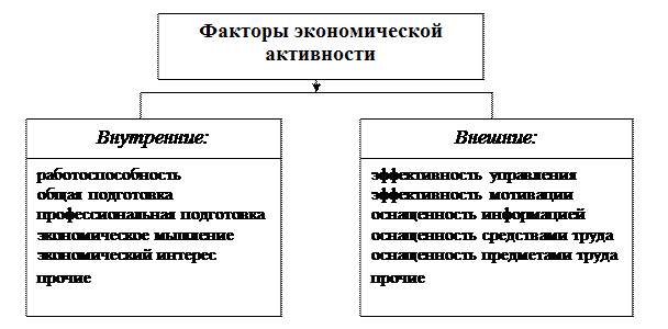 понимается способ существования и самовыражения человека, который проявляется в той или иной степени напряжения его сил в экономической сфере для наращивания ее результатов. Однако следует учитывать, что та или иная экономическая активность, ее степень зависят не только от самого человека (от внутренних факторов), но и от других, внешних по отношению к субъекту факторов. Внешних и внутренних факторов достаточно много (рис. 1.2), к тому же они взаимодействуют между собой, но в ряде случаев противоречиво.