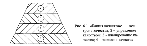 Современное предприятие, выходящее со своей продукцией на международный рынок, использует при достижении запланированного качества изделия элементы всех перечисленных выше систем управления качеством. Схематически это можно выразить в виде «башни качества» (см. рис. 1).