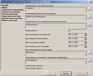 При выборе пользователем режима редактирования, поля на форме автоматически заполняются данными, которые содержаться в базе. Пользователь в этом режиме может осуществлять редактирование данных. При выборе кнопки ОК, пользователь подтверждает сохранение измененных данных. После обновления данных форма редактирования закрывается. При нажатии кнопки Отмена, пользователь завершает редактирование данных о трубопроводе без сохранения данных. При нажатии кнопки Сохранить, пользователь подтверждает сохранение данных с дальнейшим редактированием их.