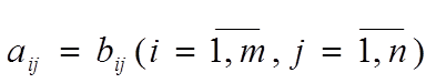 Рівність двох матриць. Матриця дорівнює матриці , якщо вони однакових розмірів, наприклад (m x n), і мають однакові відповідні елементи: