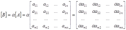 Добутком числа на матрицю порядку (m x n) називається матриця порядку (m x n), кожний елемент якої дорівнює добутку числа на відповідний елемент матриці :