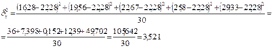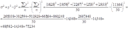 - выборочная дисперсия того же признака;