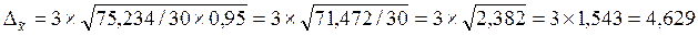 С вероятностью 0,997 можно утверждать, что средний уровень рентабельности находится в пределах 17,651≤x≤26,909