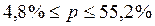 , следовательно, 30-25,2<=p<=30+25.2
