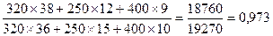 2. Находим общий индекс выполнения норм расхода стали на весь выпуск продукции: