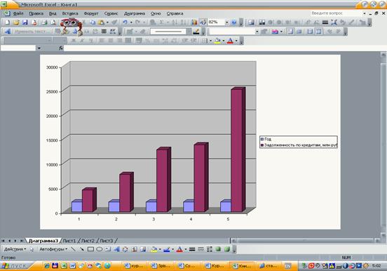 В диаграмме 1 представлено графическое изображение динамики кредиторской задолженности за 5 лет.