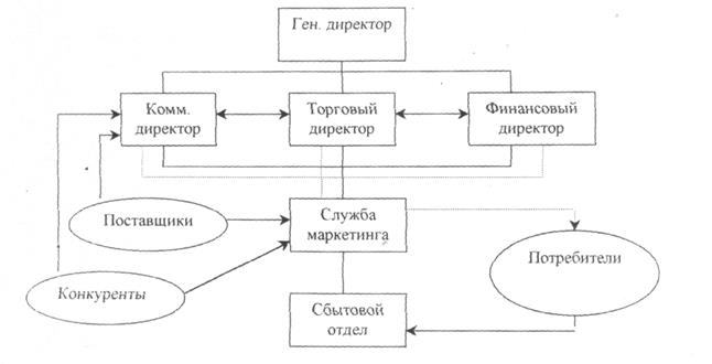 Служба маркетинга должна работать в тесном сотрудничестве с подразделениями фирмы. Финансовая служба решает проблемы наличия и использования средств. Служба НИОКР занимается конструированием новых изделий и разработкой эффективных методов производства. Служба материально-технического снабжения заботится о поставках деталей и узлов для производства. Производственная служба несет ответственность за выпуск продукции. Бухгалтерия следит за доходами и расходами, помогая службе маркетинга быть в курсе дела, насколько успешно идет достижение намеченных ею целей. Деятельность всех подразделений так или иначе влияет на планы и на действия службы маркетинга.