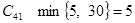 равен поделим третью строку на 5, столбец сделаем единичным для этого третью строку умножим на и прибавим к первой строке, третью строку умножим на и сложим со второй строкой; третью строку сложим со строкой . Получим новую симплексную таблицу