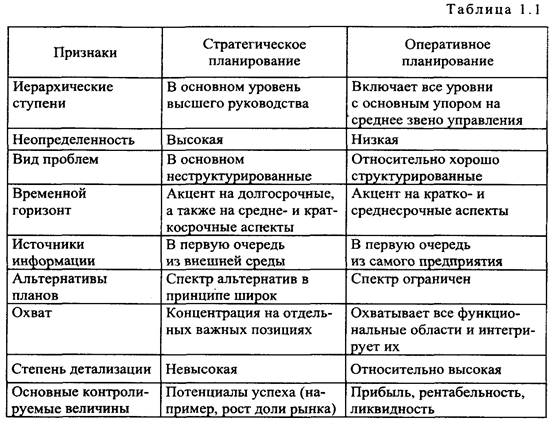 Ниже приведены отличительные особенности оперативного планирования в сопоставлении со стратегическим планированием (табл. 1.1).