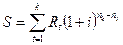 Наращенная сумма потока платежей – это сумма всех выплат с начислением на них к концу срока сложными процентами. (1.1)