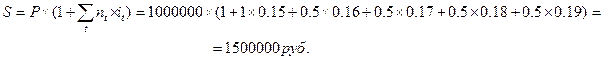 Контракт предусматривает следующий порядок погашения процентов: 1-год 15%, в каждом последующем полугодом ставка повышается на 1%. Определить наращенную сумму за 3 года, если ссуда составила 1 млн.руб.