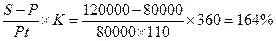S=120000, P=80000, (365/360)