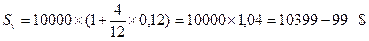 Процентные ставки i= 20%, j=12% (360/360). Срок депозита 4 месяца. Определить наращенную сумму в СКВ.