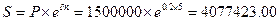 Сумма на которую начисляют непрерывные проценты, равна 1,5 млн.руб., сумма роста 20%, срок 5 лет. Сколько составит наращенная сумма.