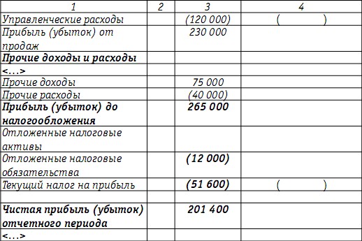В отчетности финансовый результат и элементы налога на прибыль будут отражаться следующим образом: