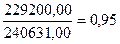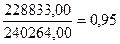= СОС/Оборотные активы = 228 833,00/ 240 264,00 = 0,95