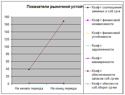 Коэффициенты финансовой устойчивости показывают, что все заемные средства и запасы покрываются полностью собственными средствами. Также что основными источниками финансирования являются не заемные, а собственные средства, что говорит, об абсолютной финансовой независимости предприятия. Коэффициент задолженности значительно уменьшается на конец периода, что означает, что риск очень мал для кредиторов, поставщиков и инвесторов. Почти весь собственный капитал находится в мобильной форме, то есть постоянно оборачивается, что очень продуктивно для фирмы. На конец года увеличивается коэффициент обеспеченности собственными оборотными средствами предприятия, которые необходимы для его финансовой устойчивости. Все показатели находятся в пределах нормативного значения. Следовательно, данный анализ позволяет судить о фирме как о достаточно кредитоспособной и финансово устойчивой.