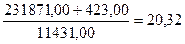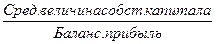 = Балансовая прибыль/Средняя величина собст.ист-в = 12 003,00 / 229 200,00 = 0,05