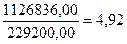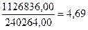 = Выручка/Среднегодовая величина активов = 1 126 836,00 / (39 249,00+240 631,00)* 0,5 = 8,05