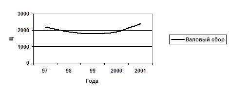 По данной таблице можно судить о том, что общая земельная площадь за 5 лет изменилась, то есть, уменьшилась за счет строительства нового перерабатывающего цеха, а так же истощения в результате неблагоприятных климатических условий и не использования удобрений.