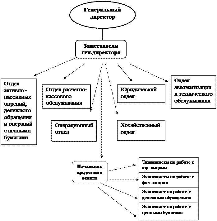 Банковский менеджмент позволяет определить рациональные требования и методические основы построения оптимальных организационных структур и режимов работы функционально-технологических систем, которые обеспечивают планирование и реализацию финансовых операций банка и поддерживают его устойчивость при заданных параметрах, направленных на приращение собственного капитала (акционерного капитала) и/или прибыли при условии сохранения стабильности и устойчивости коммерческого банка. Менеджмент в Банке «*****» — это управление процессами формирования и использования денежных ресурсов. Он тесно связан с организационно-технологическим менеджментом — управлением банковскими подразделениями, их взаимоотношениями в различных процессах банковской деятельности, в том числе управлением персоналом банка. Также в Банке «*****» большое значение имеет информационное и логико-аналитическое обеспечение менеджмента.