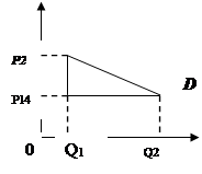 Этот закон иллюстрирует кривая спроса. Она нисходящая, показывает обратную зависимость между ценой и объемом спрашиваемого товара, наклон кривой отрицательный.