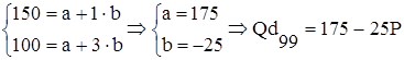 2. Кривая спроса на хлеб в 1999 г. характеризовалась точками с координатами: