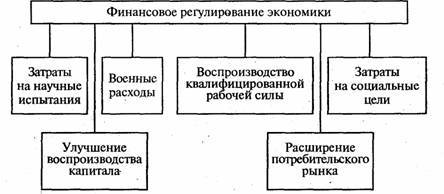 Регулированию экономики способствуют расходы на социальные цели. Они позволяют расширить потребление товаров и услуг, поскольку ассигнование на социальную инфраструктуру (строительство школ, больниц, жилых домов) расширяет рынок сбыта для многих отраслей хозяйства.