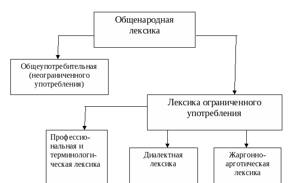 К общеупотребительной лексике относятся слова, используемые (понимаемые и употребляемые) в разных языковых сферах носителями языка независимо от их места жительства, профессии, образа жизни: это большинство существительных, прилагательных, наречий, глаголов, числительные, местоимения, подавляющее количество служебных слов. В составе лексики русского языка есть слова, которые известны и понятны всем и могут быть употреблены как в устной, так и в письменной речи.