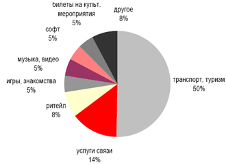 Самый быстрорастущий сегмент рынка - оплата услуг (в первую очередь транспортных). В 2008 году его оборот составил 73 млрд. рублей, что на 8% больше показателей 2007-го.