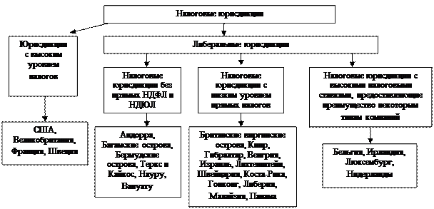Благоприятные режимы осуществления хозяйственной деятельности, в том числе и налогообложения, предоставляют многие страны в зависимости от целей, которые преследует их внешнеэкономическая стратегия. Только «чистых» оффшорных зон, т.е. стран, которые целенаправленно создают на своей территории льготные условия для международной экономической деятельности, около 80. Эти зоны могут являться самостоятельными государствами: Ирландия, Люксембург, Мальта, Сингапур; быть зависимыми территориями: Гибралтар в составе Великобритании или Антильские острова в составе Нидерландов; частями государств: Нью-Брансуик (Канада), Вайоминг, Делавэр (США), кантон Цуг (Швейцария)[4]