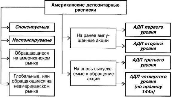 В качестве ее номинала принимается количество акций, на которые она предоставляет права. Виды АДР. В зависимости от инициатора выпуска АД Р подразделяются (рис. 3.4) на: