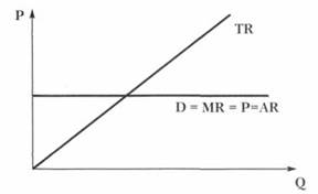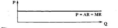 Для фирмы совершенного конкурента линии среднего дохода, предельного дохода, цены и спроса на его продукцию являются горизонтальными (то есть параллельными оси абсцисс, оси объема выпуска) и они совпадают.