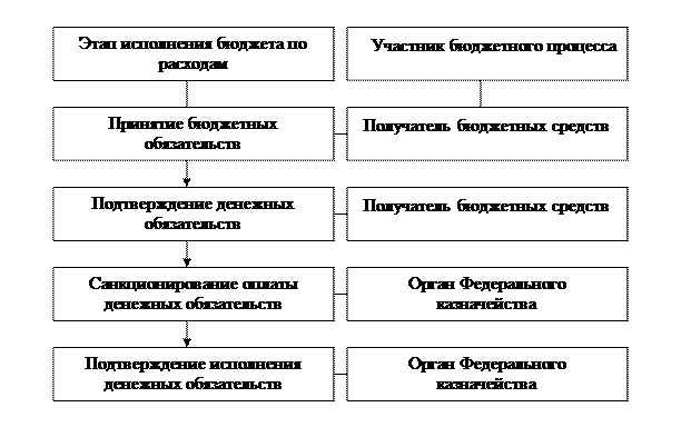 При казначейском исполнении бюджета поступление доходов, регулирование объемов и сроков принятия бюджетных обязательств, санкционирование расходов в рамках выделенных лимитов бюджетных обязательств, осуществление платежей от имени бюджетополучателей возлагаются на органы федерального казначейства.
