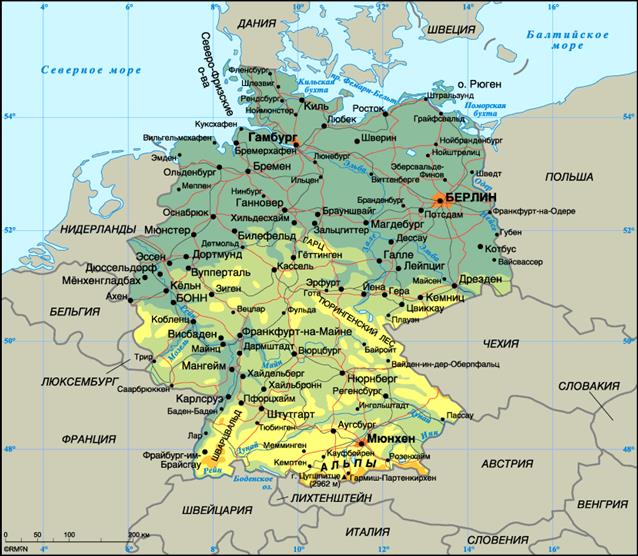 Карта 1: Географическое положения Германии
