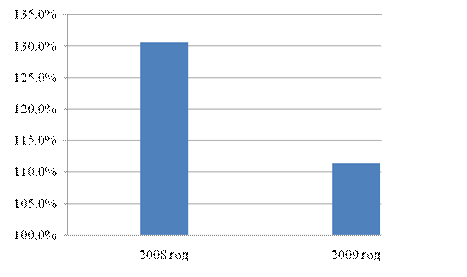 Значения нижней границы процентной ставки по валютным кредитам, обеспечивающие сохранение доходов банка при уровнях годовой инфляции, характерных для 2009-2009гг. и прогноз до 2010 года, приведены в таблицах 3.5. и 3.6. Они также свидетельствуют о том, что принятая банком кредитная политика в части установки процентных ставок по валютным кредитам была далека от равновесной, наиболее выгодное для банка соотношение курсов валют, уровня инфляции и процентных ставок по кредитам в долларах США наблюдается в г.и 2007г. С кредитами в евро очевиден тот факт, что банки более длительное время имели возможность повышать свои доходы через кредитование в евро, ситуация изменилась в 2007г., когда при резком падении курса евро и снижении уровня инфляции процентные ставки не в полной мере покрывали связанные с этим расходы банка, ситуация стала изменяться в противоположную сторону в 2008, 2009гг., тем не менее прогноз на 2010г. свидетельствует о необходимости повышения ставок по кредитам в евро.