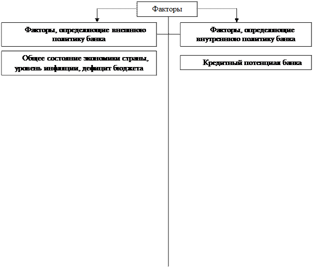 Банковская политика в целом и кредитная политика коммерческого банка, в частности, зависит от двух групп факторов. В первой группе следует выделить факторы, определяющие внешнюю политику банка: