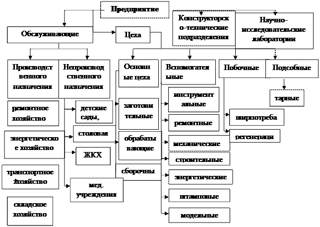 К производственным подразделениям относятся: цеха, участки, лаборатории, в которых изготовляется и проходит контрольные проверки основная продукция, выпускаемая предприятием, комплектующие изделия, материалы и полуфабрикаты, запасные части для обслуживания изделий и ремонта в процессе эксплуатации и т.п.