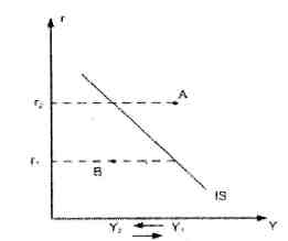 2) Кривая IS («инвестиции - сбережения») описывает равновесие на товарном рынке и отражает обратную зависимость между рыночной ставкой процента и уровнем дохода. Кривая IS имеет отрицательный наклон. Движение вдоль кривой IS показывает изменение уровня национального дохода при изменении уровня процентной ставки так, чтобы на рынке благ сохранилось равновесие.