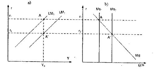 Монетаристы отвергают фискальную политику с прямо противоположных позиций, отводя главную роль денежно-кредитной или монетарной политике. Для крайней неоклассической позиции характерны следующие допущения. Во-первых, по мнению неоклассиков, линия спекулятивного спроса на деньги является абсолютно неэластичной по отношению к процентной ставке, то есть линия LM представляет собой вертикаль. Во-вторых, функция инвестиционного спроса, напротив, обладает высокой эластичностью относительно процентной ставки.