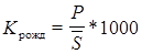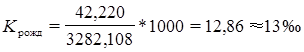 Коэффициент рождаемости показывает, что за рассматриваемый период в среднем родилось 13 детей в расчете 1000 жителей.