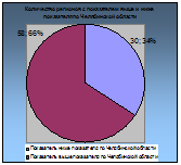 По данным группировки построена Диаграмма 2. Хотя значение показателя в Челябинской области незначительно превышает аналогичный показатель по стране, все же есть 58 регионов, в которых доля доходов, расходуемых на прирост финансовых активов, превышает соответствующую долю по Челябинской области. И лишь 34% (30) регионов имеют показатель ниже. Все вышеперечисленное позволяет сделать вывод о том, что Челябинская область по значению показателя* находится в конце списка регионов, и показатель большинства субъектов РФ превышает показатель Челябинской области.