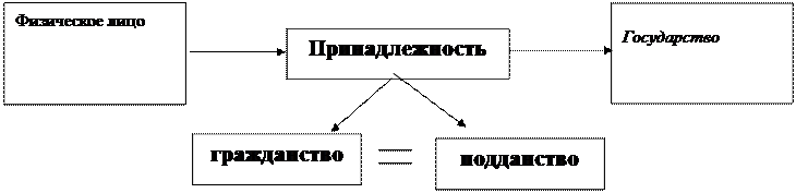 В законодательстве некоторых государств существуют различные термины для обозначения принадлежности физических лиц к государству. В странах с республиканской формой правления обычно употребляется термин «гражданство», встранах с монархической формой правления все еще встречается термин ««подданство». В американском, британском, а также в законодательстве некоторых других государств существует множественность терминов, обозначающих принадлежность лица к государству.