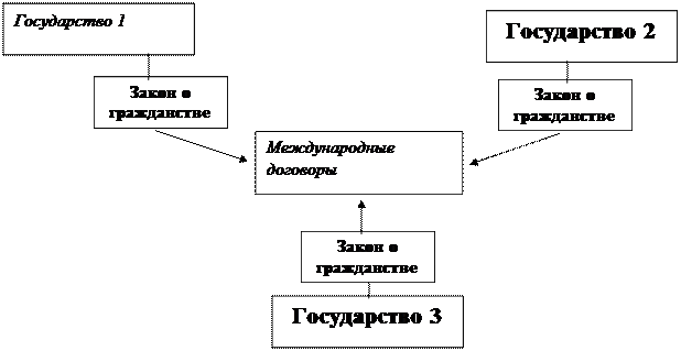 Гражданство регулируется в принципе внутренним законодательством государства. Возможно отсутствие закона о гражданстве в каком-либо государстве. Но дело не в формальном законодательном регулировании гражданства. Гражданство – понятие, неразрывно связанное с государственностью. Отсутствие закона о гражданстве не означает отсутствия самого гражданства, хотя и может осложнить ведение внешних сношений. Так или иначе, регламентация гражданства – внутренний вопрос, сфера внутренней компетенции государства. Условия приобретения и утраты гражданства устанавливаются внутренним законодательством государства. Поскольку каждое государство в данной области действует самостоятельно, неизбежны столкновения (коллизии) законов о гражданстве различных государств. Такие коллизии могут быть источником трений и конфликтов международного характера. Для их ликвидации или предотвращения государства часто прибегают к заключению международных договоров, то есть вырабатывают соответствующие нормы международного права.