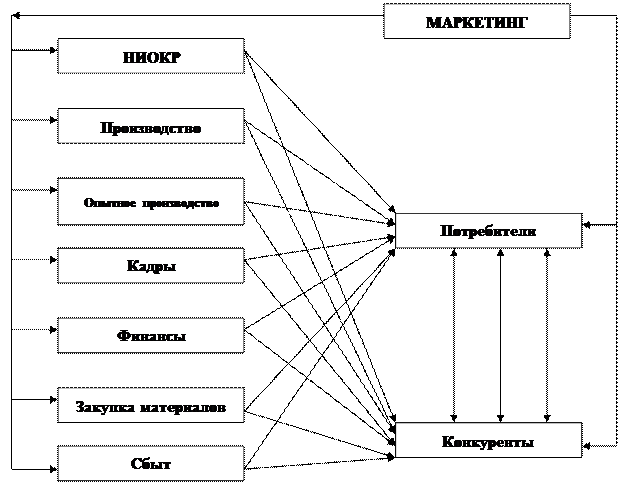 Рисунок 1. Место и роль маркетинговой службы в системе служб предприятия