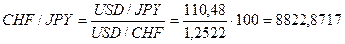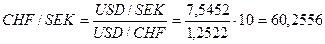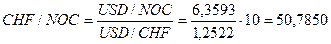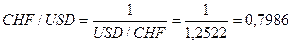10000 х 0,7986 (СHF/USD) = 7986